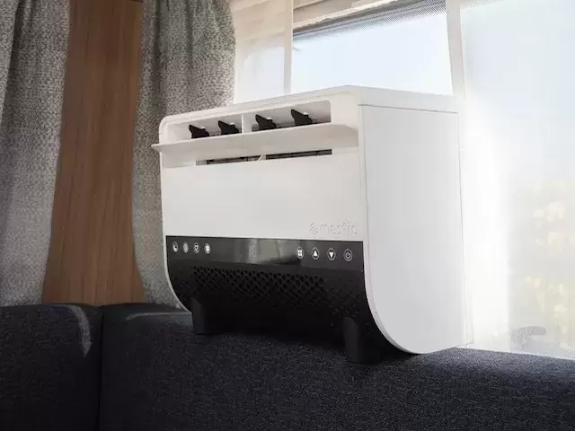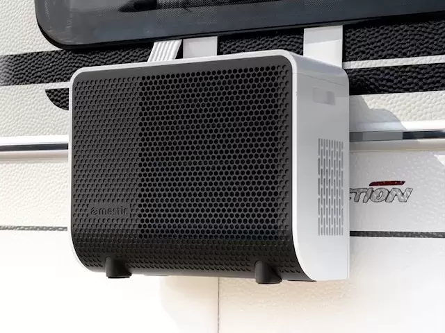 Mantenha sua caravana ou motorhome maravilhosamente fresco com o ar-condicionado split Mestic SPA-3100. O inovador ar-condicionado split é composto por duas partes conectadas por tubos flexíveis através da janela. Esses tubos são tão finos que a janela pode ser fechada entreaberta. Uma janela de cumeeira é perfeita para isso. O condensador está localizado fora do veículo e o evaporador dentro. Basta pendurar o ar-condicionado split no recesso da janela usando um suporte especial. Este suporte é infinitamente ajustável e, portanto, é adequado para quase todos os tipos de caravanas e motorhomes. A unidade externa deste ar-condicionado para caravana possui uma classe de isolamento IPX4. Isso significa que você pode deixar a unidade pendurada do lado de fora durante uma tempestade. Não precisa do ar-condicionado temporariamente? Então você pode removê-lo facilmente.