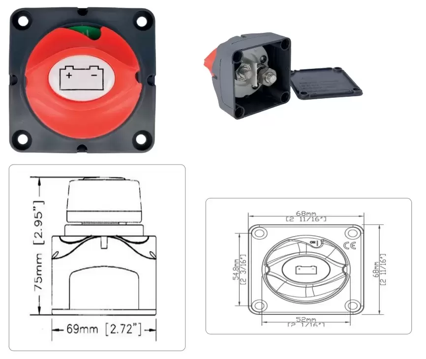 Chave seccionadora de bateria multiuso ON/OF 275AH para caravanas, autocaravanas, trailers e 4x4 terrestres.