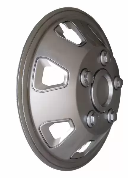 Conjunto de 4 calotas de motorhome 16´´ modelo Itah prata fosca projetadas para veículos com aros muito curvos.