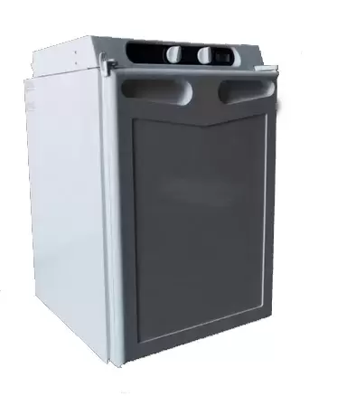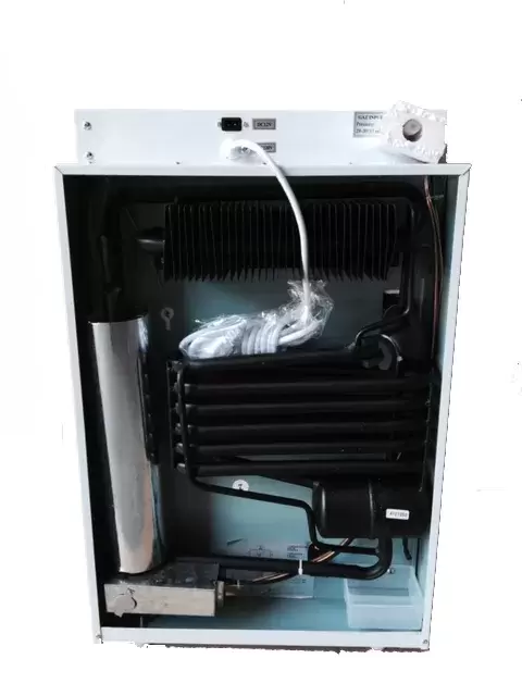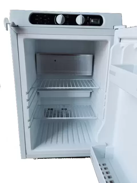 Operação Tri-mix: 12/220 V e gás. Com termóstato e indicador de presença de chama. Sistema de travamento da porta e caixa de gelo. Cabo de ligação com ficha de isqueiro (150 cm). O modelo não é recomendado para instalação.