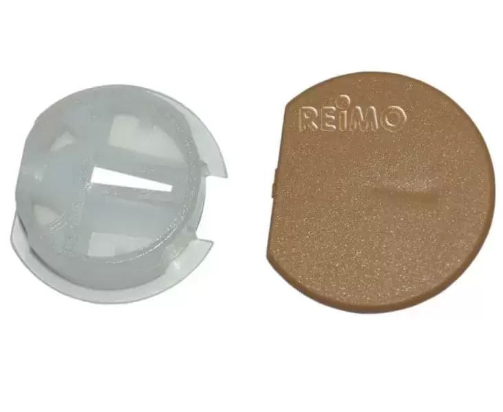 Blister com 10 unidades, peça de montagem branca mais tampa marrom.