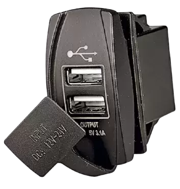 Tomada USB Tipo switch 10/30V 5 e 4.8AH para caravanas, autocaravanas, autocaravanas e 4x4 terrestres. - Ref. 7-100.99.USB2 Referência 7-100.99.USB2 10,60 €