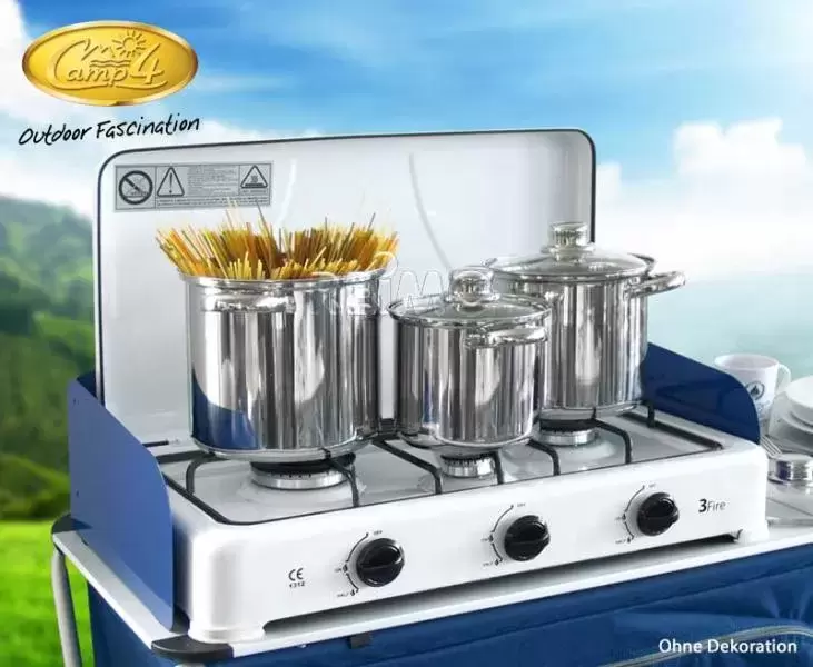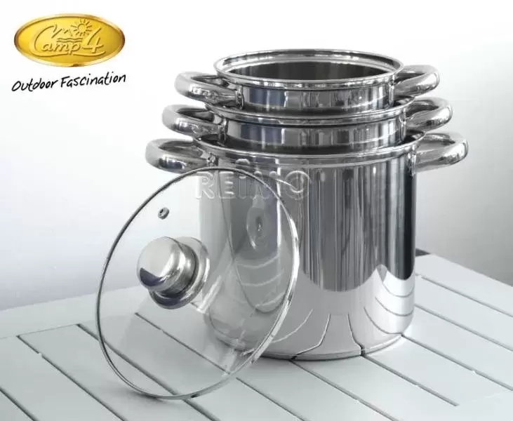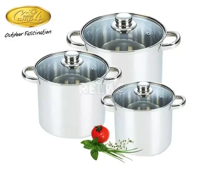 Conjunto de três potes concebidos para cozinhas de caravanas e autocaravanas.