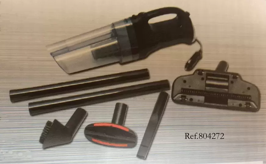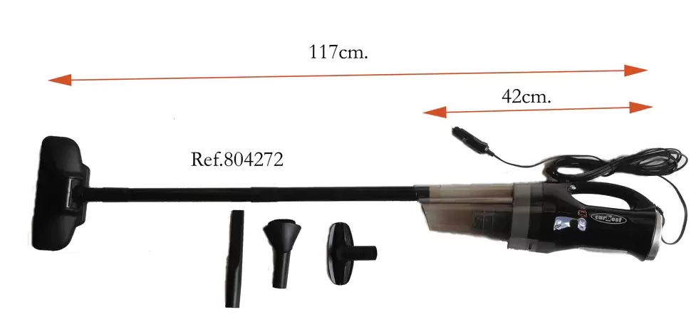 Aspirador compacto de 12v com vários acessórios que nos permitem utilizá-lo mesmo em pé para aspirar o chão do nosso veículo.