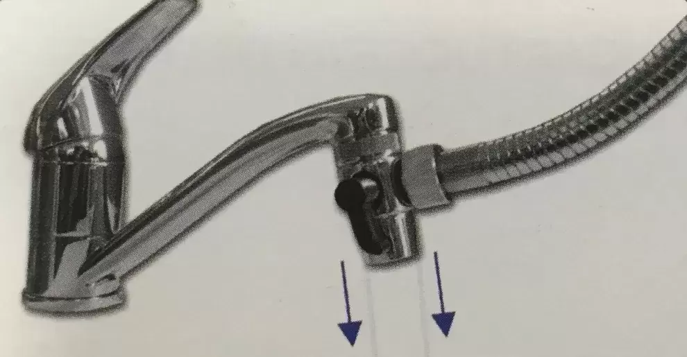 Na posição normal, a água sai normalmente do jet switch e ao girar a alavanca desvia-se o fluxo de água do arejador para o chuveiro de mão.