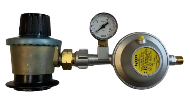 Fabricado em latão, é um adaptador que se instala entre o regulador de gás da garrafa espanhola e o regulador de gás das instalações de gás alemãs e de outros países da União Europeia.
