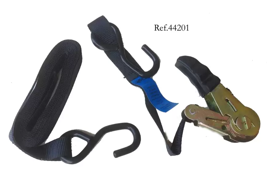 Cinta de fixação com ganchos de ancoragem e catraca.
