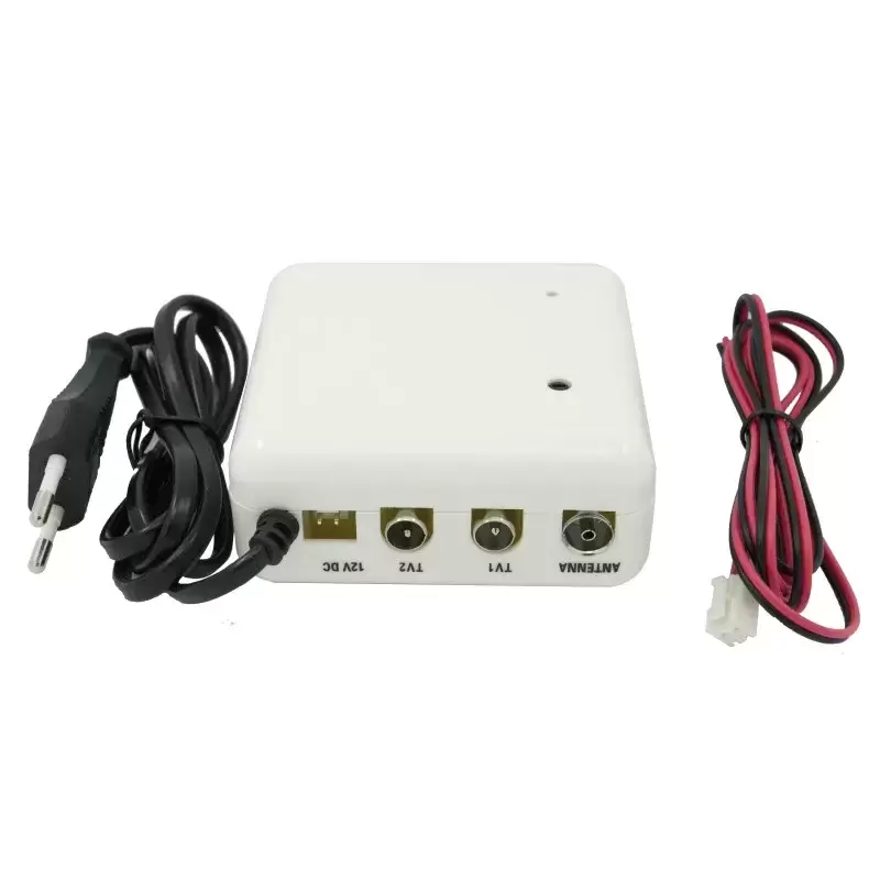 Amplificador de antena 12V/220V para caravanas e autocaravanas marca MK, produto de fabrico nacional de elevada qualidade.