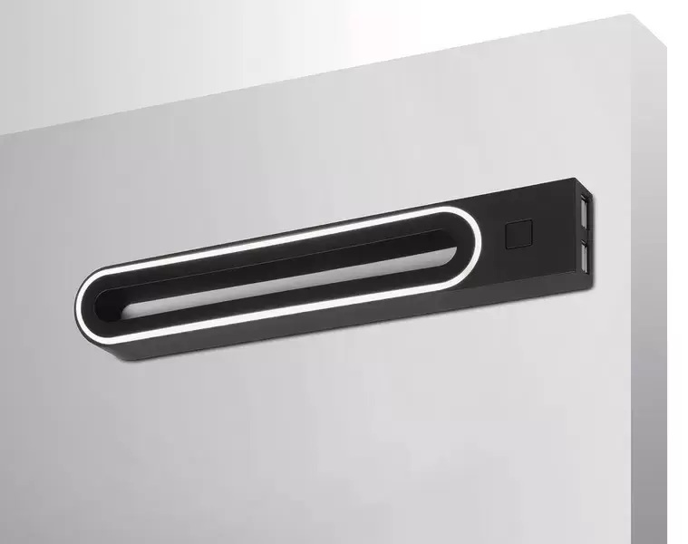 O aplique LED tem um design elegante, um formato exclusivo e está equipado com um interruptor integrado. 2 portas USB (1 A cada) permitem alimentar qualquer dispositivo multimídia.