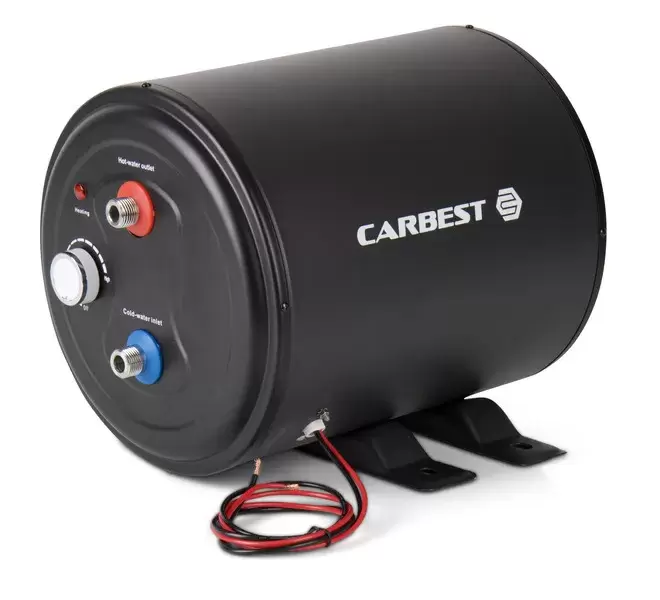 Aquecedor de água Carbest de 10 litros, 12V/200W, para caravanas, autocaravanas, furgões camperizados e veículos 4x4 de expedição.