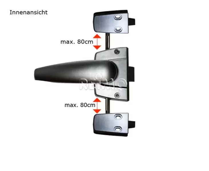 Conjunto completo, fecho superior, fecho inferior e fecho central com 2 puxadores interior exterior para casa de banho e 2 espagnolettes de 80cm.