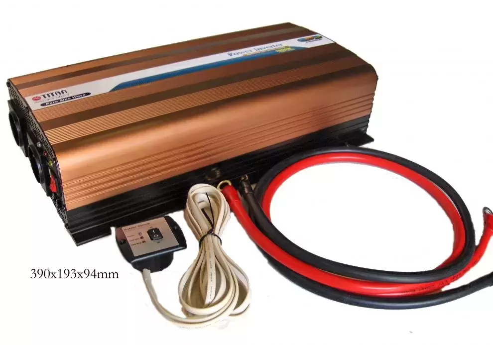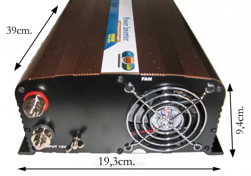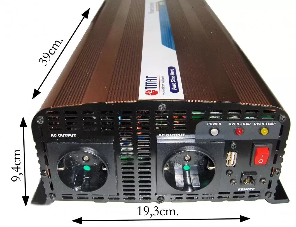 Continuous PowerDC input VoltageOutput VoltageEfficiencyFuseSocket (optional)USB portDimensions (LxWxH)Net weightAccessories