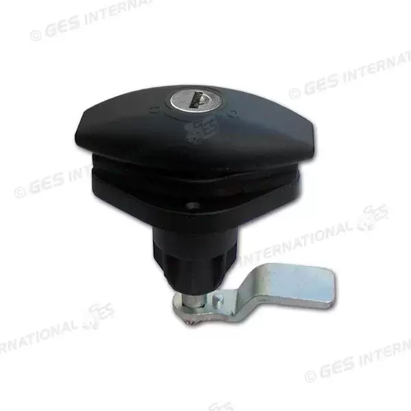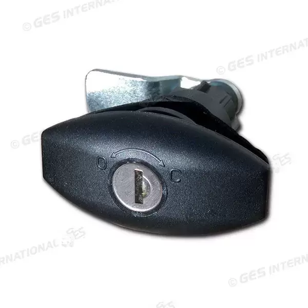 Autocaravana de caravana preta com fechadura no peito.
