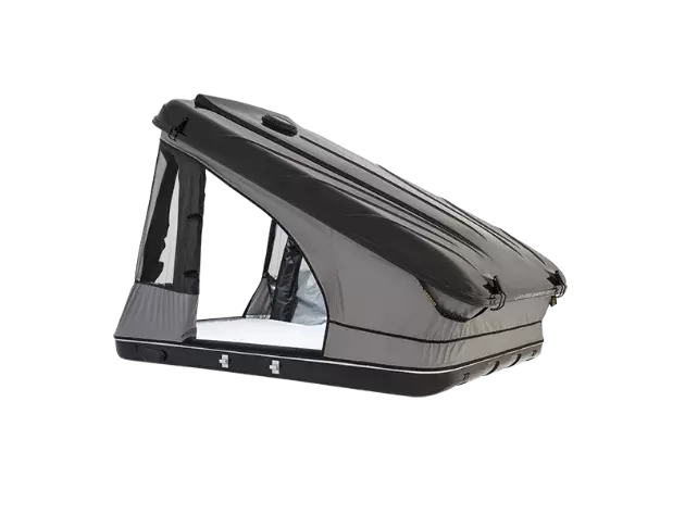 Tenda de teto JAMES BAROUD preta SPACE EVO, modelo de abertura angular.