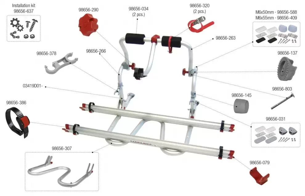 Bicicletário Bicicletário Fiamma Autocaravana vermelha - Ref. 44118
