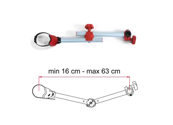 Bike Block Pro D2 com junta intermediária que permite ancoragem com distância mínima de 16cm e máxima de até 63cm.