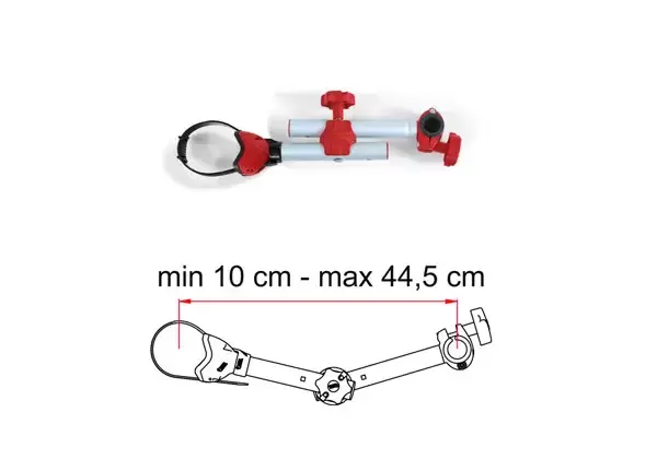 Suporte de bicicleta com junta intermédia que permite a sua colocação a uma distância mínima de 10 cm e máxima de 44,5 cm.