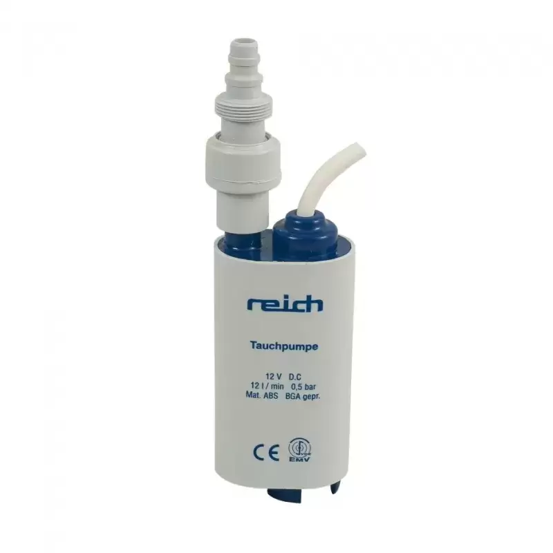 Bomba de água submersível Reich 12 L/M com válvula anti-retorno para caravanas, autocaravanas e autocaravanas. - Ref. 160432