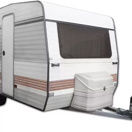 Caixa de transporte traseira curva para barra de tração de caravana 840x620x340 mm.