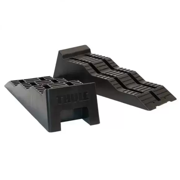 Calços de nivelamento de três níveis Thule com estojo de armazenamento.