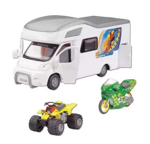 Autocaravana Capuchina Fiat Ducato com moto, quad e portas dobráveis.