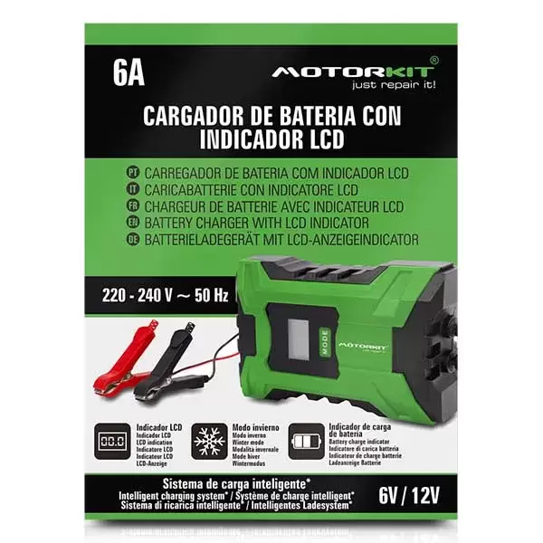 Carregador de bateria de 6,0 ampères. 6-12V / 220-240V 50Hz.