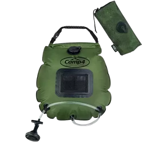 Chuveiro solar portátil de 20 litros para campistas e veículos 4x4 terrestres.
