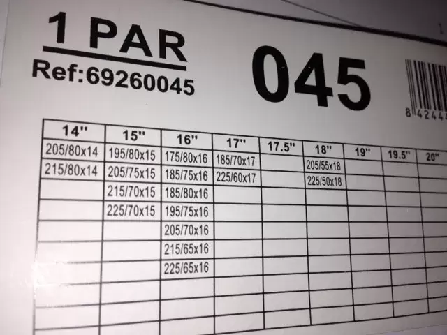 Tabela de compatibilidade de pneus na foto anexa.