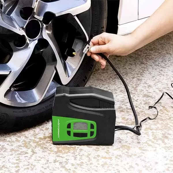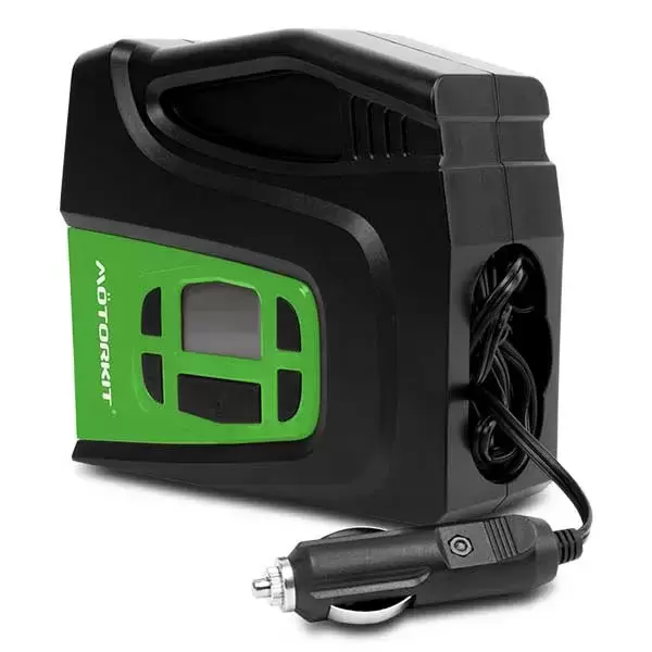 Compressor digital de 120W, infla em apenas 5 minutos (0-35 psi), com indicador digital, ajuste seguro ao pneu, medidor grande e de fácil leitura; cabo confortável e compartimento de armazenamento; adaptadores incluídos para inflar bolas, brinquedos e outros itens infláveis.