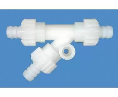 Conector em forma de Y para tubulações de água para tubos com diâmetro interno de 10mm e diâmetro externo de 13 a 17mm sem a necessidade de grampos, com furo para parafuso de fixação.
