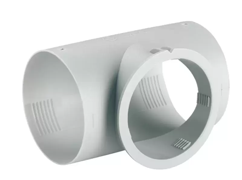 Conector para tubo de aquecimento de 65mm em forma de T com boca central para dar saída ao difusor de ar com portinhola Ref.72143