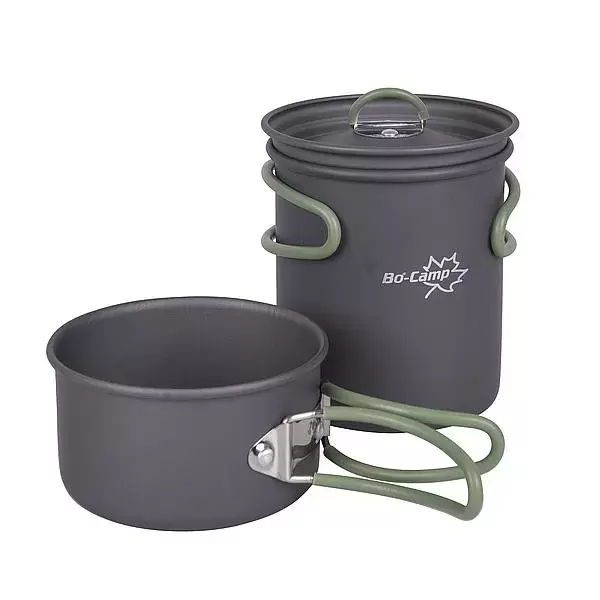Conjunto de 2 mini panelas com tampa e pegas dobráveis BO-CAMP, especial para autocaravana, overland e caravanismo.