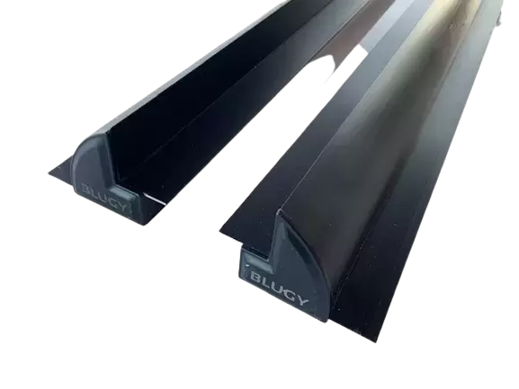 Fabricado em alumínio lacado preto, com tampas laterais, alta qualidade Blugy.