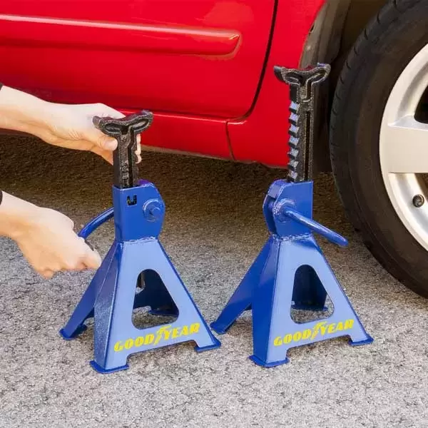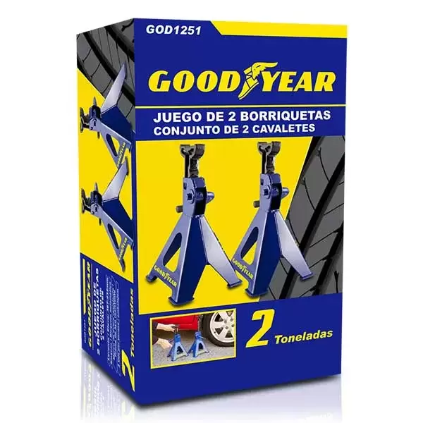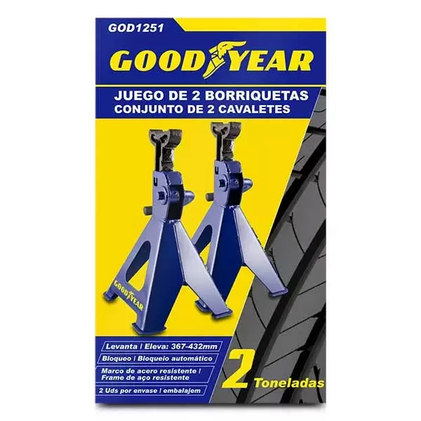 Conjunto GoodYear de 2 suportes de macaco de aço de 2 toneladas para caravanas, autocaravanas, campistas e 4x4 terrestres. - Ref. GOD1251