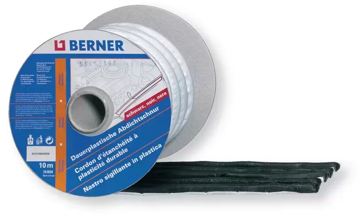 Cordão butílico BERNER PRETO Redondo 10mm em rolo de 10 metros, para todo o tipo de instalações.