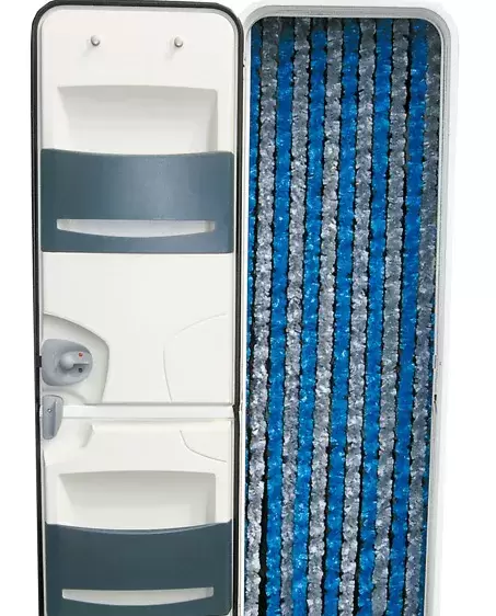 Cortina Caterpillar nas cores cinza e AZUL de 200x56cm.