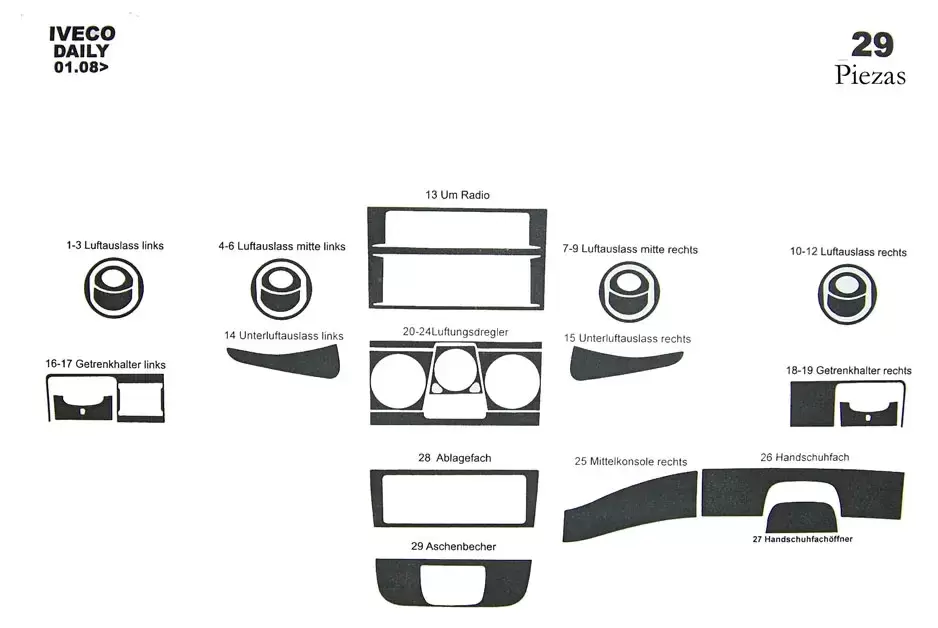 Definir dezembro tablier Autocaravana Iveco Daily 01-08> 29 psz.