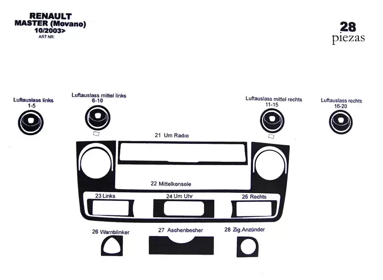 Kit de decoração do tablier Renault Master a partir de Outubro de 2003.