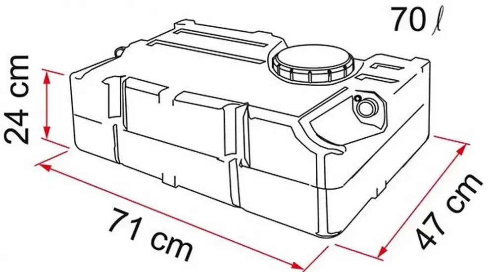 Depósito auxiliar de 70 litros 71x47x24 cm para caravanas, autocaravanas e autocaravanas.