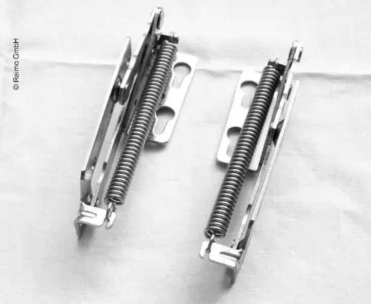 Dobradiça metálica com mola para armários e baús de caravanas, autocaravanas e autocaravanas.