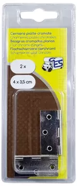 Dobradiça plana cromada blister 40x35 mm para autocaravana, caravana e autocaravana