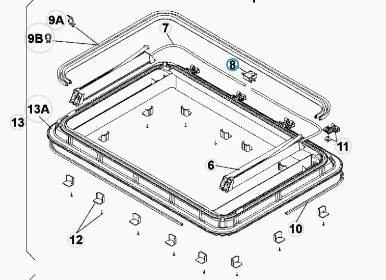 Engrenagem de substituição para claraboias Dometic 960x655 Heki 3/ Heki 1 para autocaravanas, caravanas e autocaravanas.