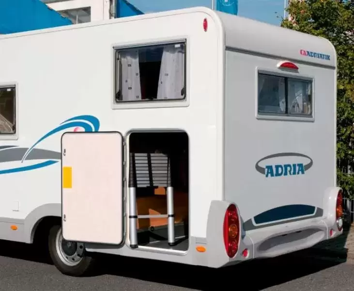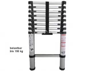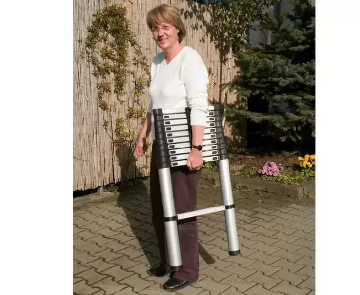 Escada telescópica de 3,20 metros de altura quando desdobrada que nos permite subir confortavelmente no tejadilho da nossa autocaravana, permanecendo 80cm dobrada para guardar, ocupando pouco espaço.
