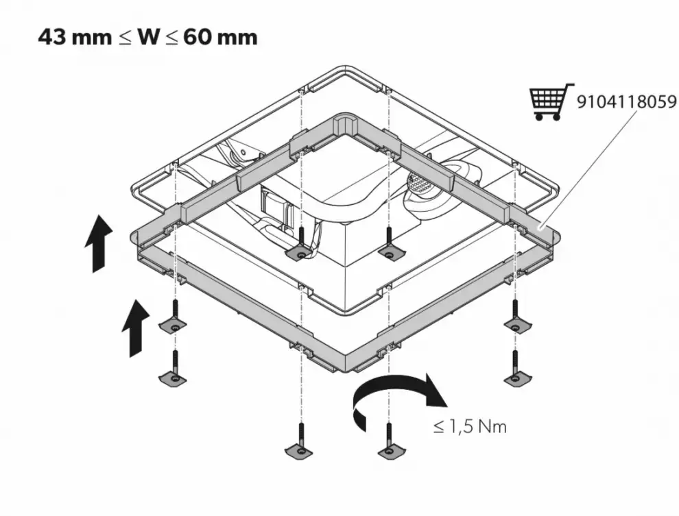 Estrutura adaptadora de clarabóia Micro Heki 28x28 para espessuras de 43 a 60 mm. - Ref. 9104118059