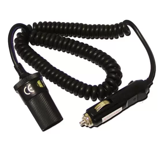 Extensão de tomada 12v sem interruptor com cabo espiral de 3 metros e potência máxima de 5ah.