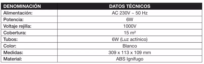 Exterminador electrónico de insectos voladores AC 230V, 6W, camping caravaning y overland 4x4.