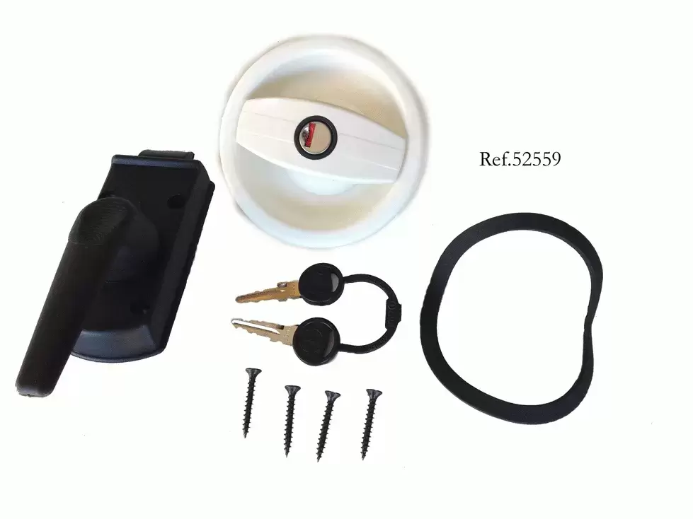 Fechadura branca redonda esquerda para caravanas - Ref. 44-SRT1306B