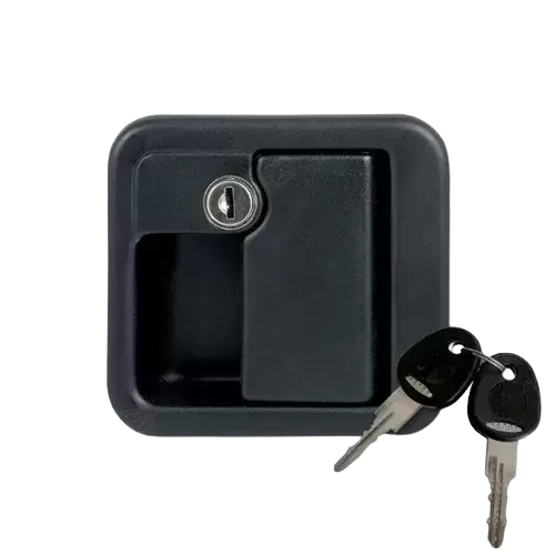Fechadura de cor preta para porta de entrada para caravanas e autocaravanas.