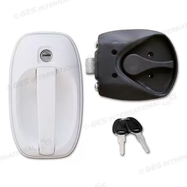 Fechadura exterior completa para autocaravana, é composta por tudo o que está exposto na foto principal.