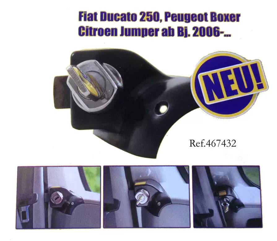 Fechadura HEOSsafe para portas de cabina com chave perfeitamente integrada nas portas dos Fiat Ducato chassis 250, Peugeot Boxer, Citroen Jumper, ano 2006 em diante, veículos fabricados até 2021.